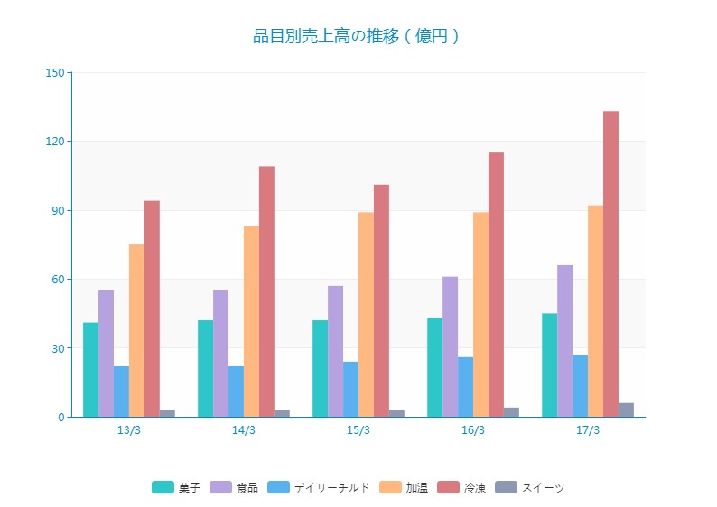 冷凍事業の売上高は13/3期94億円から17/3期133億円と同社の業績改善の主因です。具体的に何が牽引したのか見てみましょう。