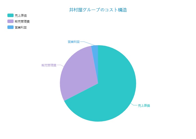 食品製造工場、原材料費などの売上原価が67%で、物流費、本社コストを含む販売管理費が30%、営業利益率が3%程度です。