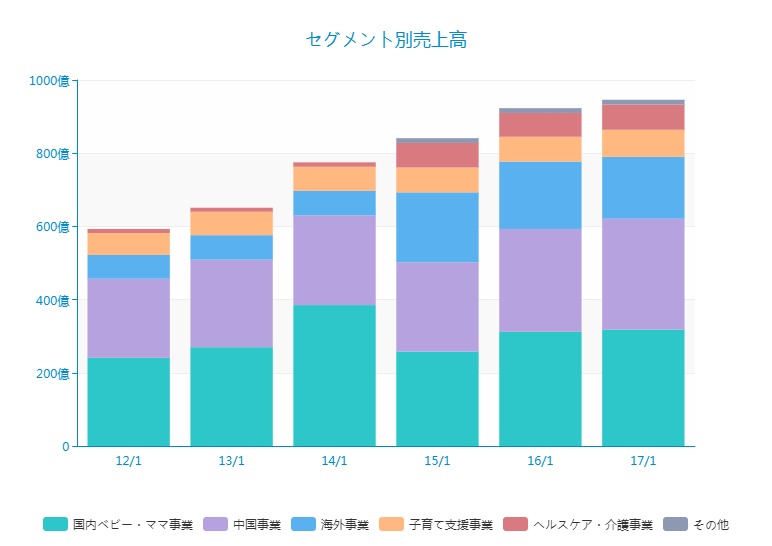 ピジョンってベビー用品では有名だけど、少子高齢化ってよく聞くし、あんまり成長は期待できないかなーなんて思っていました。