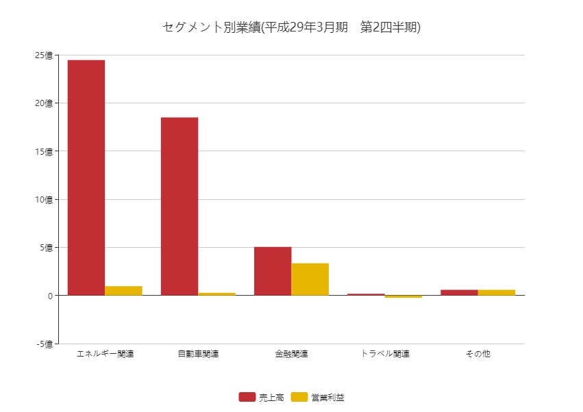 また、2017年11月の決算短信を見ると、第2四半期累計期間(2017年4月1日~2017年9月30日)の各セグメントの収益は以下のようになっています。