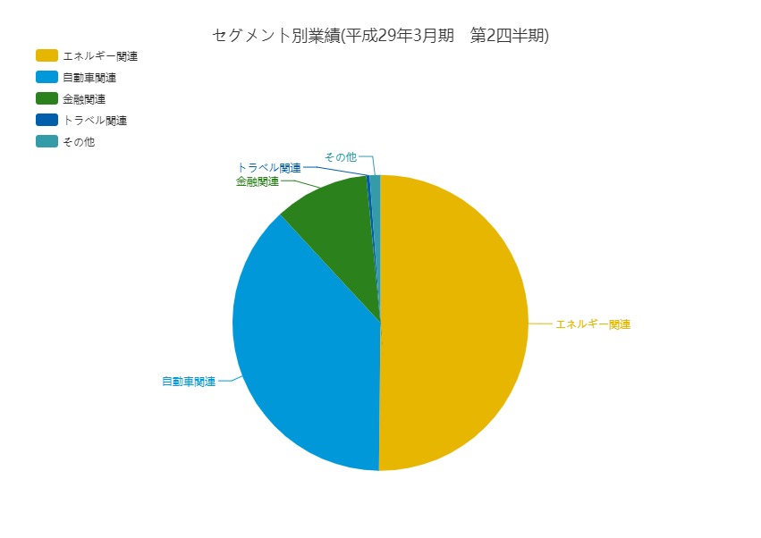 ホームページに書かれている事業内容や四季報をチェックしてみると、エネルギー・自動車関連が現在のメイン事業となっていて、金融・トラベルに関しては子会社で行っているビジネスであることが分かります。