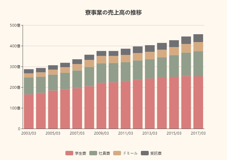 学生寮と社員寮事業が売上の大半を占めていることがわかります。