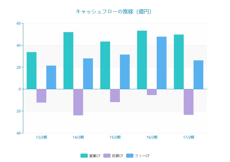 その範囲で投資活動を行っている結果、フリーキャッシュフローは安定的にプラスとなっています。