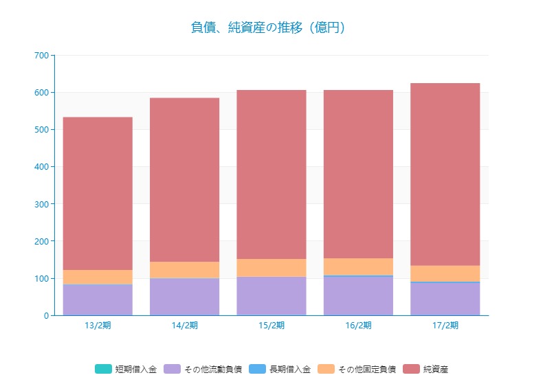 自己資本比率は17/2期には78.6%で高水準で、有利子負債も3.8億円でほとんどないと言ってよい水準です。