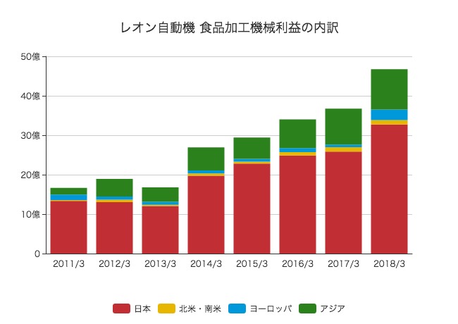 レオン自動機全体の利益から見ると決して大きいとは言えないものの、アメリカ大陸でのモデル工場はかなりの規模で稼働していることが分かります。