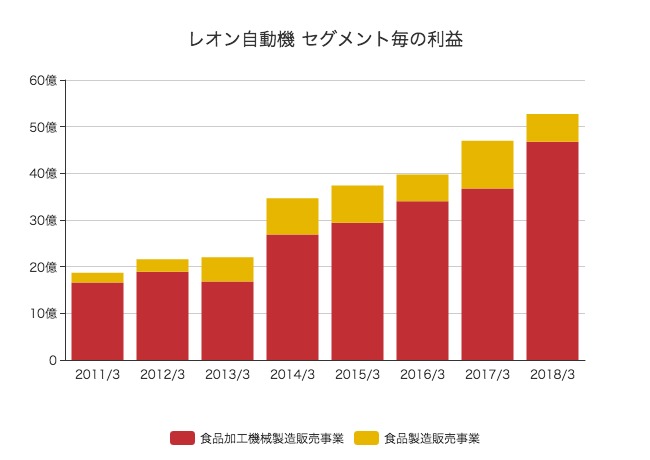 セグメント毎の利益をみると、食品加工機械が47億円弱と、利益の大半を稼いでいます。