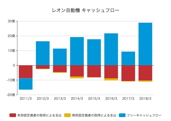 営業キャッシュフローから設備投資の金額を引いたFCF(フリーキャッシュフロー)を計算すると、直近では29億円弱にまで拡大。