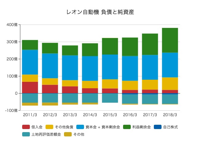 資本金と資本剰余金の合計が144億円と非常に大きくなっています。これは少し以外ですが、レオン自動機は株式発行による資金調達をかなり積極的に行ってきたようです。
