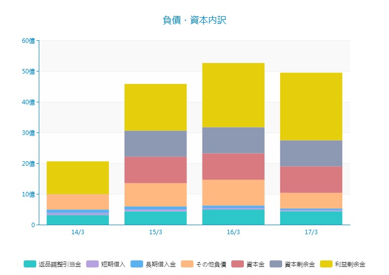 負債・資本もやはり上場した時に資本金を厚くしたことや、資本剰余金を積んだことが大きく影響しています。財務は健全です。