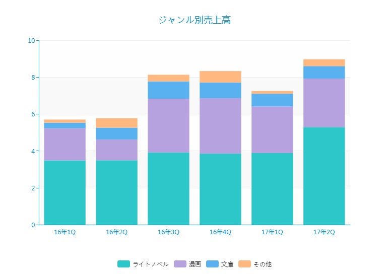 同社はライトノベル、漫画、文庫などのジャンル別に売上高の開示があります。