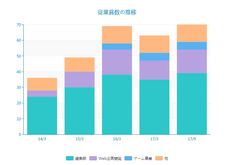 従業員数は、14/3期末に36名から、17/9月末には70名まで増加しています。