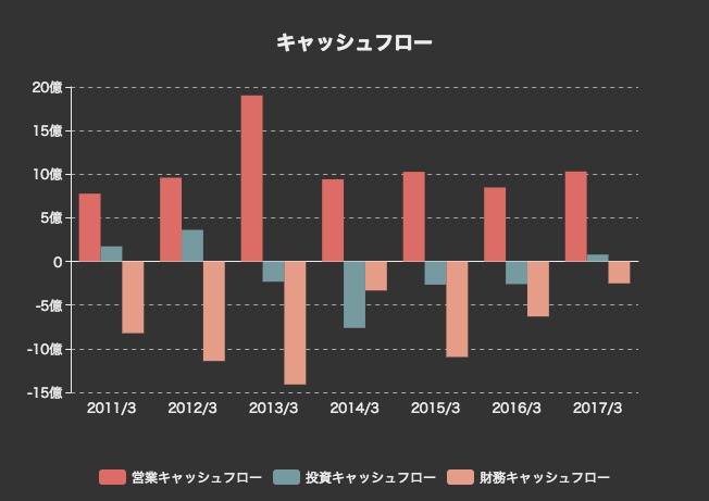 フリーキャッシュフローについても営業CFと同じく2011年から2017年まで堅調です。