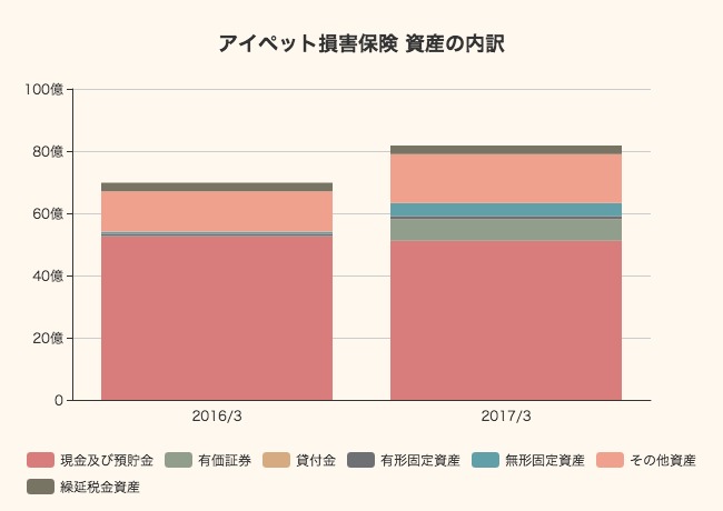 総資産82億円ほどのうち、現預金が51億円もあります。流石に保険会社だけあってかなりキャッシュリッチです。