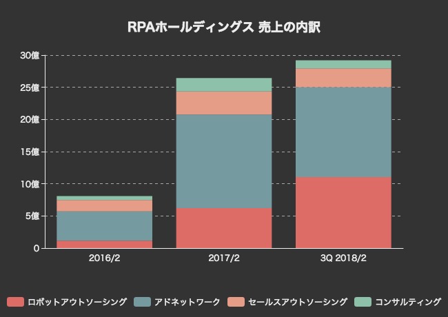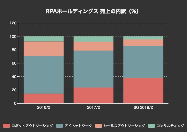 売上の大部分はロボットアウトソーシングではなく「アドネットワーク」事業です。