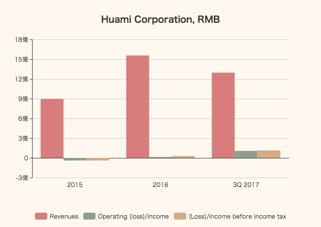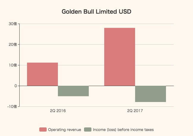 2017年2Q時点での売上は3億6146万元(61億円)と規模は小さく、営業赤字は2億3543万元にのぼっています。