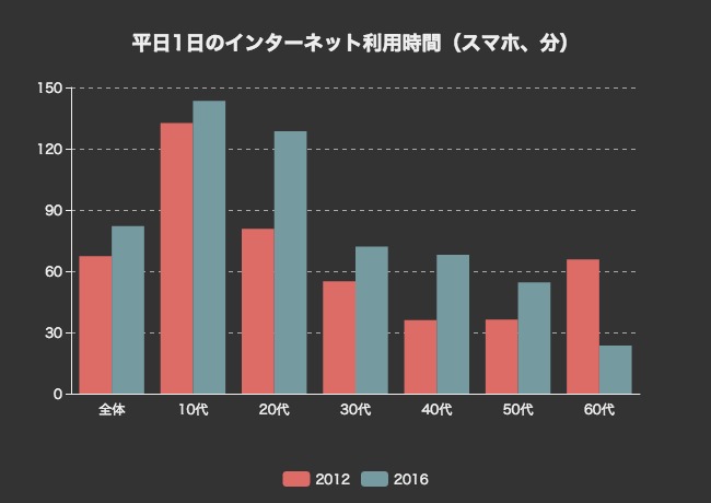 同じように、「スマホによる1日のネット利用時間は平均で1時間ちょっと」だとか、「若年層におけるYouTubeの利用率は90%を超えている」などの具体的なデータを見せられると、それまで曖昧に感じていたイメージがリアルなものとして感じられる気がします。