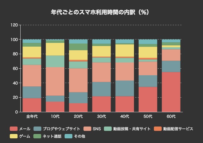 そこで、今回はその中にあったスマートフォン利用に関する統計データをビジュアライズしてみたいと思います。
