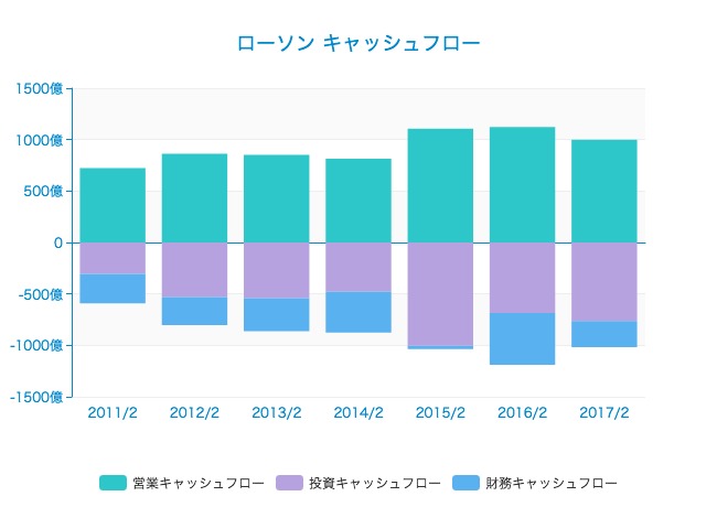 営業キャッシュフローは毎年1000億円前後を生み出しています。