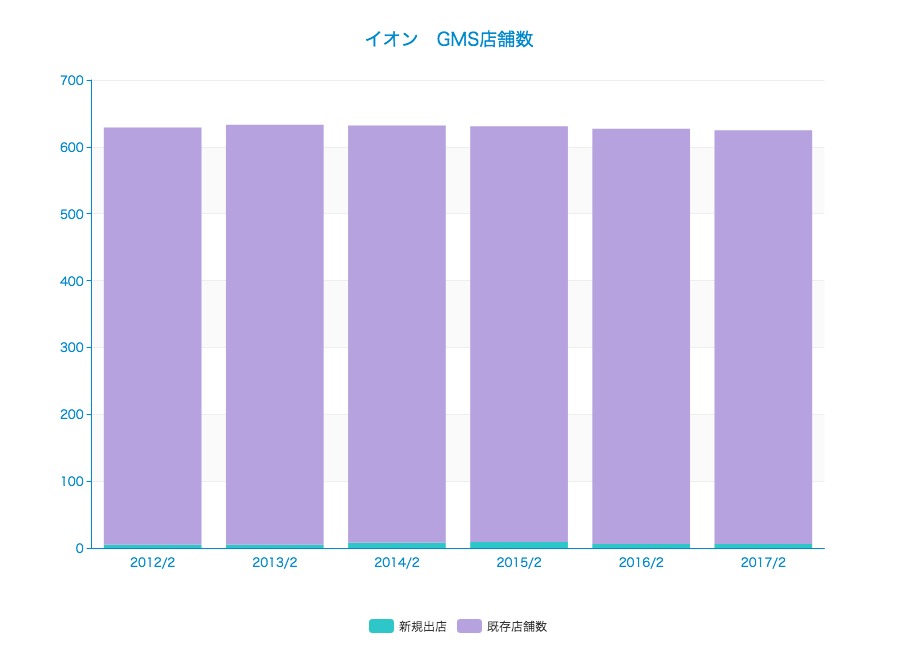 まずはイオンの最大事業である「総合スーパー」事業の店舗数です。