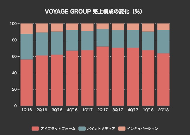 それでは、VOYAGE GROUPの売上構成の変化を見てみましょう。