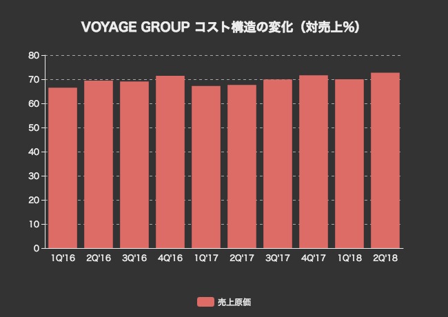 グラフにすると微妙な変化ですが、今2Qの売上原価率は72.68%。