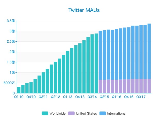 もはやMAUの80%近くが海外ユーザーとなったTwitterですが、広告売上では今だにアメリカ国内が半分以上を占めています。