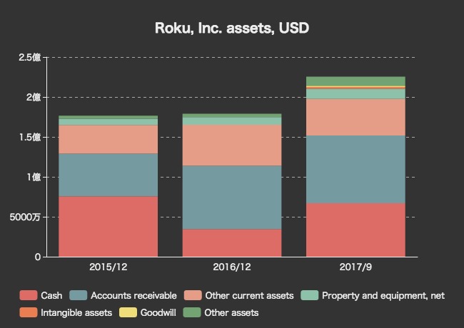 流動資産(Current assets)だけで1.97億ドルとほとんどを占めているのはテクノロジー企業らしいですね。