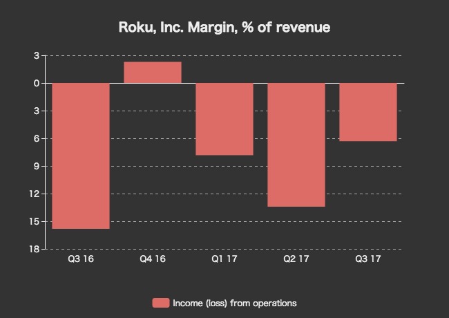 まずはRokuの損益の状況について、四半期ごとに見てみましょう。