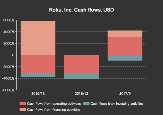 2017年3Qには営業キャッシュフローが3119万ドルのプラスに転じています。