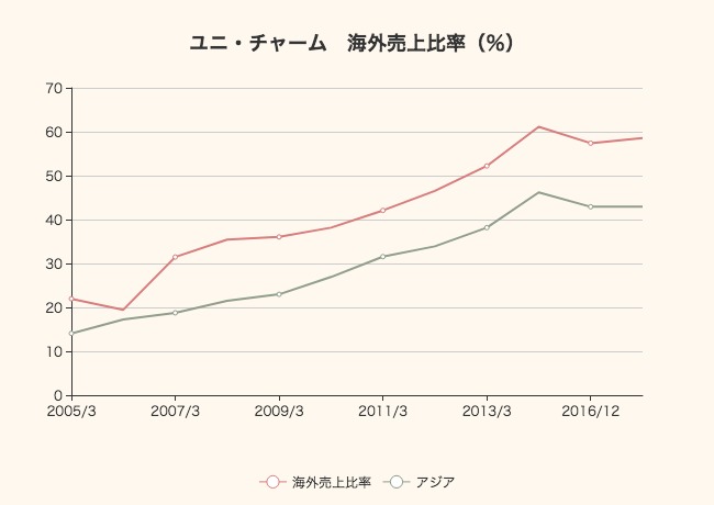 海外売上比率が約60%まで上昇しており、そのうち40%以上はアジア。ユニ・チャームはどのようにして市場を開拓していったのでしょうか。
