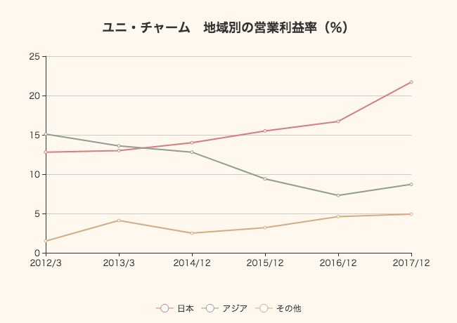 ユニ・チャームの展開する事業は、経済成長に伴って拡大する製品ニーズに合わせたラインナップになっているとも見て取れます。