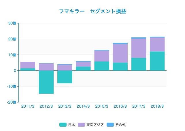 東南アジアの利益は2013/3期2億円から2017/3期12億円と増加。