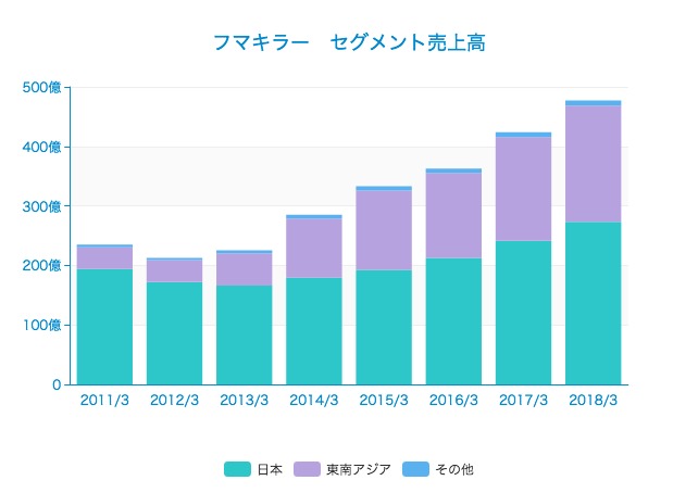 フマキラーは「日本」「東南アジア」を報告セグメントとしており、地域ごとの売上を公開しています。