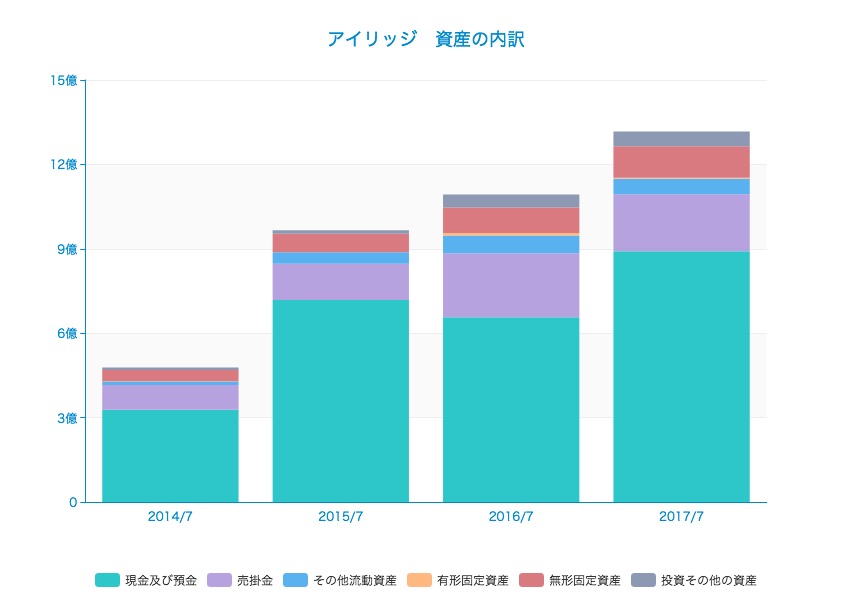 2012/7期の売上高は8623万円でしたが、2017/7期には14億9335万円まで増加。この5年間で売上高は17.3倍に。
