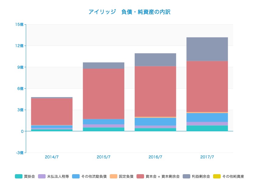 2017年7月末時点において、資本金と資本剰余金の合計7億1275万円、利益剰余金3億3228万円となっています。