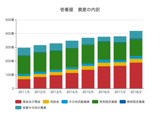 総資産418億円のうち現預金は187億円と、飲食店にしてはかなりのキャッシュリッチです。