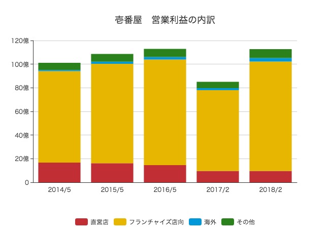 フランチャイズ店による営業益が92億円と、グループ全体のほとんどを占めています。