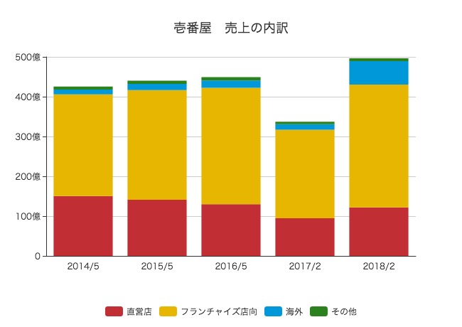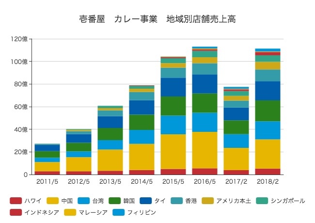 ただ、壱番屋の海外売上は58億円(2018/2期)ですから、これが倍増しても全体で10%程度の増収にとどまります。
