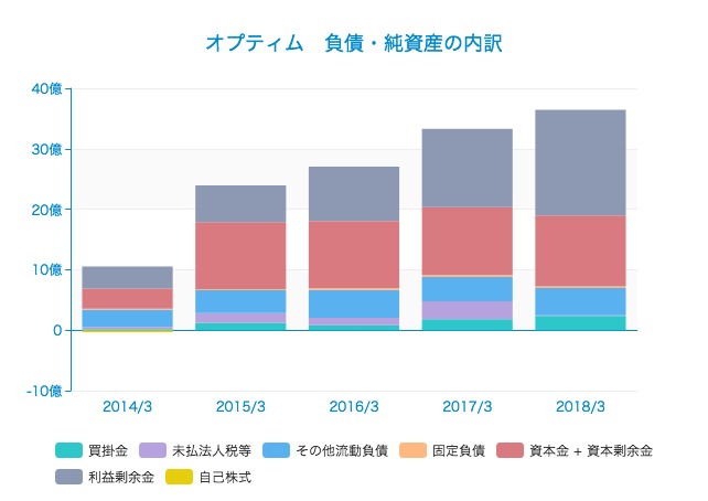 借入金はなく、オプティムが自社事業と株式発行によって調達したお金で事業を発展させてきたことが分かります。