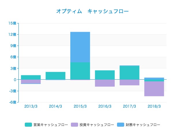 2017/3期と比べて営業キャッシュフローが減少しており投資キャッシュフローの支出が増加しています。
