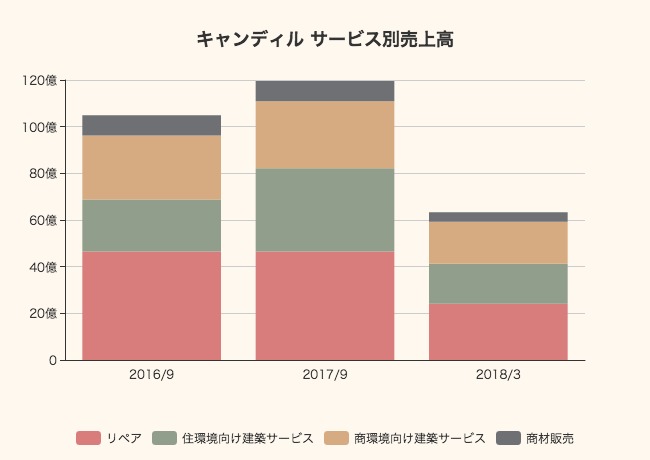 まとめると、キャンディルは「建築業界」「住宅」「商業施設」の三つをターゲットに「修繕(リペア)」をはじめとした建築アフターサービスを提供していることが分かります。