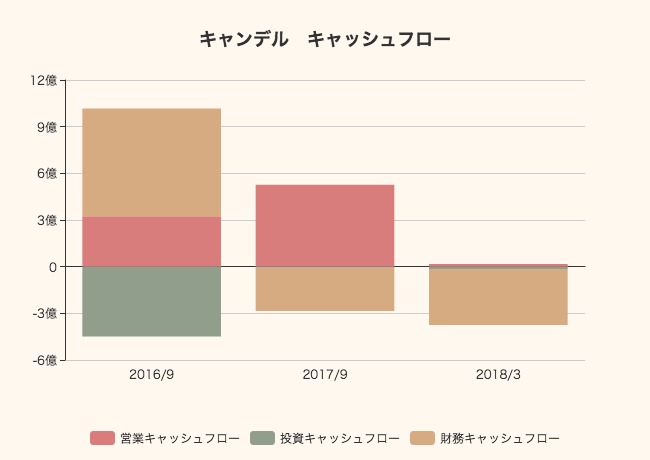 2017/9期の営業キャッシュフロー5億2600万円と増大していましたが、2018/9期の上半期は1784万円しか稼いでいません。