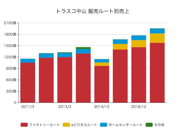 2011/03期の売上高は1154億円でしたが、2017/12期には1950億円にまで増加。