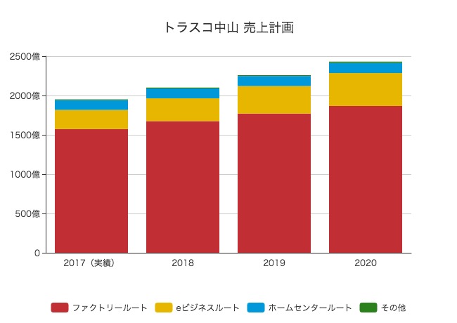 ファクトリールートは1865億円(現在+18.4%)と着実に成長させ、eビジネスルートで420億円(現在+72%)と大きな成長を目指しています。