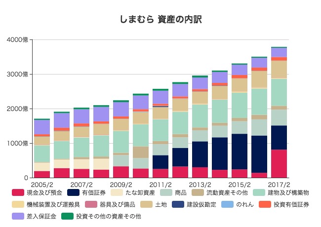 このことからわかるのは、しまむらが店舗のための不動産に大きな投資をしながら、同時に莫大なキャッシュを蓄えており、かなりの余裕があるということです。