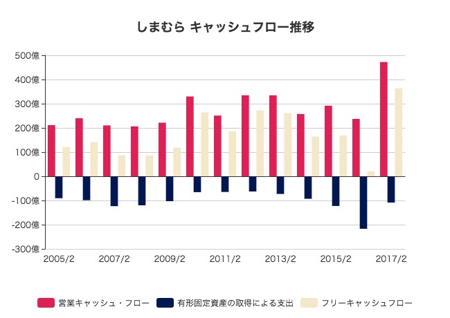 最後に、しまむらが過去に生み出したキャッシュフローをチェックしてみます。