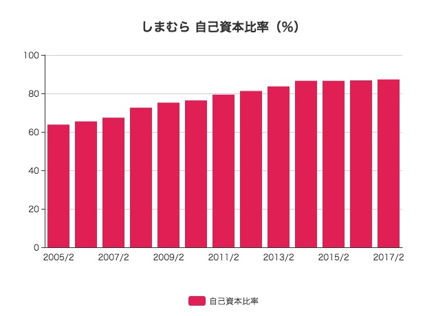 2005年2月期の自己資本比率は60%ちょっとでしたが、近年は80%を超える高い水準にまで達しています。