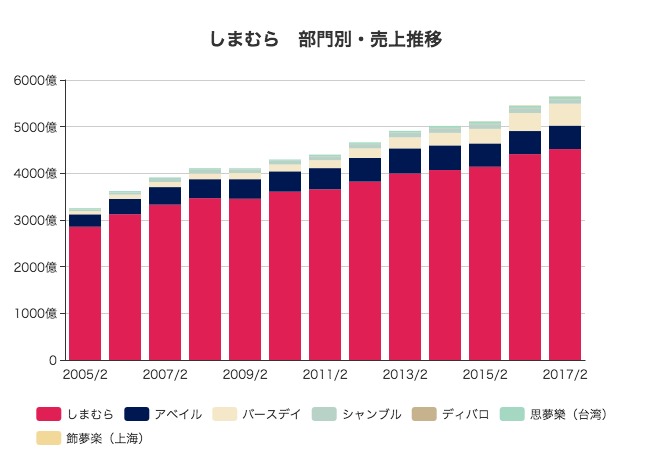 2004年2月期の売上高は2296億8800万円でしたが、2017年2月期には5654億6900万円にまで増大しています。