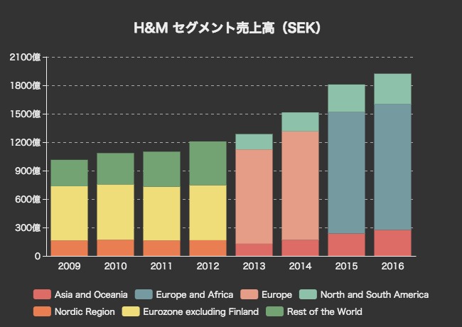 それでは、H&Mの事業数値を見ていきましょう。まずは全体業績の推移です。