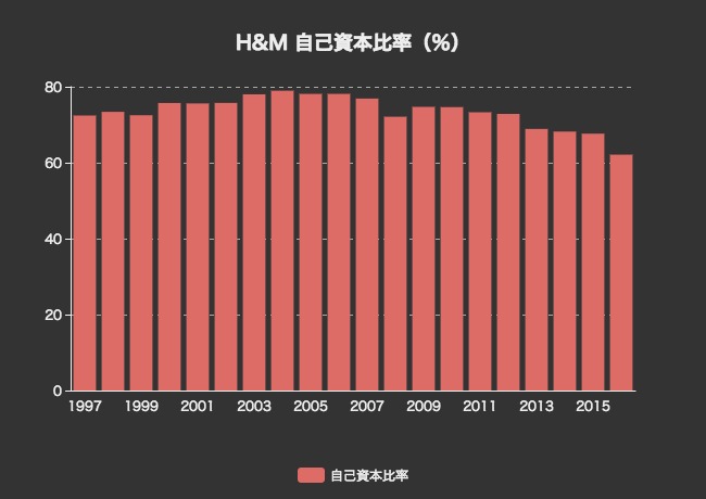 2012年までは70%を超える自己資本比率をキープしていましたが、近年は62%にまで低下してしまっています。